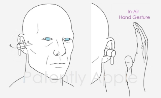 Patently Apple은 미국 특허 상표청에 등록된 애플의 특허 중 터치 없이 공중에서 제스처로만 에어팟을 컨트롤할 수 있는 내용을 발견하였고, 이 기능이 실현된다면, 볼륨 조절이나 재생, 일시정지 등의 기본적인 제어를 손동작만으로도 가능할 것으로 보인다.