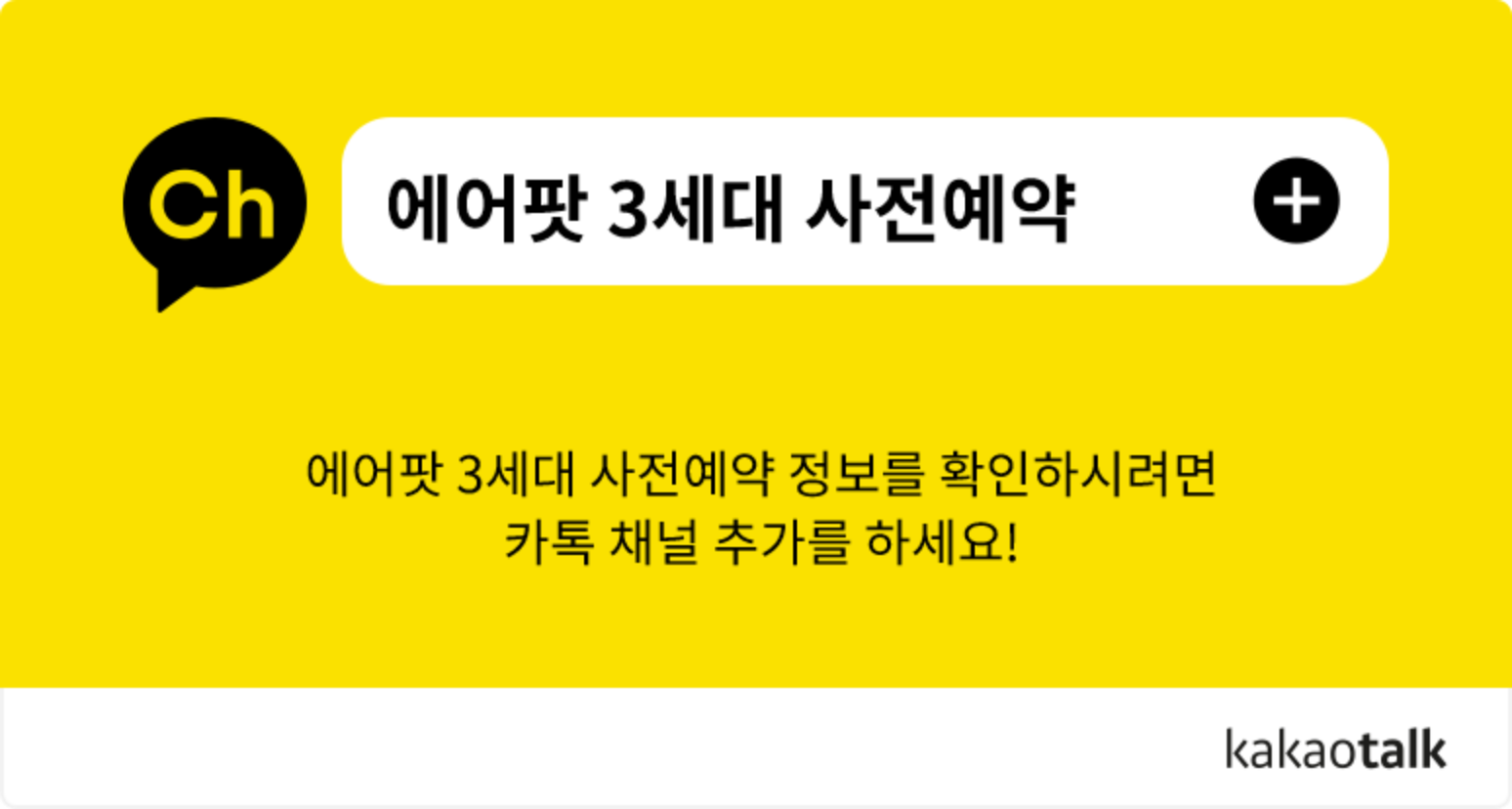 ※ 아래 카톡 채널 추가를 하면, 에어팟 3세대 출시일과 사전예약 정보를 카카오톡으로 받아볼 수 있다.